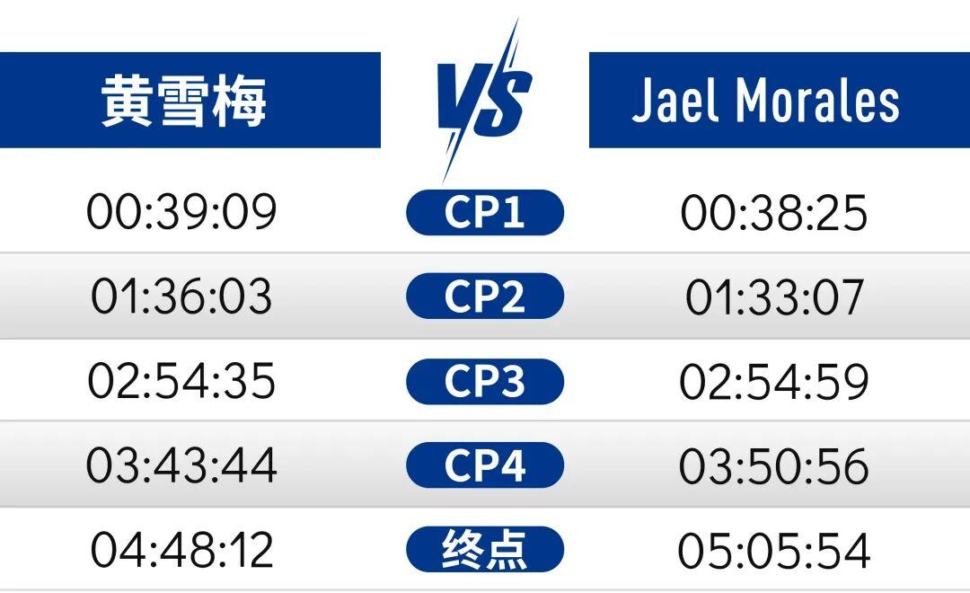 CP3打卡后,黄雪梅发现,对手的脚步声消失了,逐渐稳住自己领先位置的她把比赛转化到自己熟悉的节奏里。“到终点时才发现杨艳离我不远,幸好没再慢,不然她可能就追上了。”